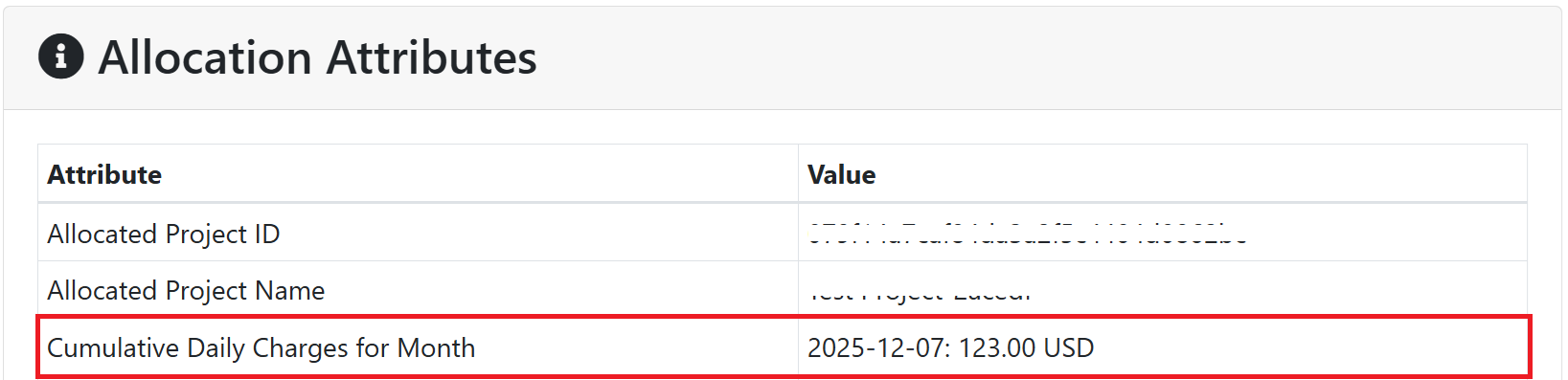 Each entry reflects the total accumulated billable charges for that month as of the end of that specific day. These values are refreshed nightly by a scheduled CronJob, ensuring that the cumulative totals remain up to date.