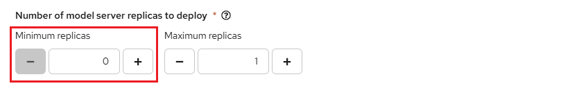 Number of model server replicas to deploy: This defines the number of instances of the model server engine you want to deploy. You can scale it up as needed by specifying the Minimum replicas and Maximum replicas, depending on the expected number of incoming requests.