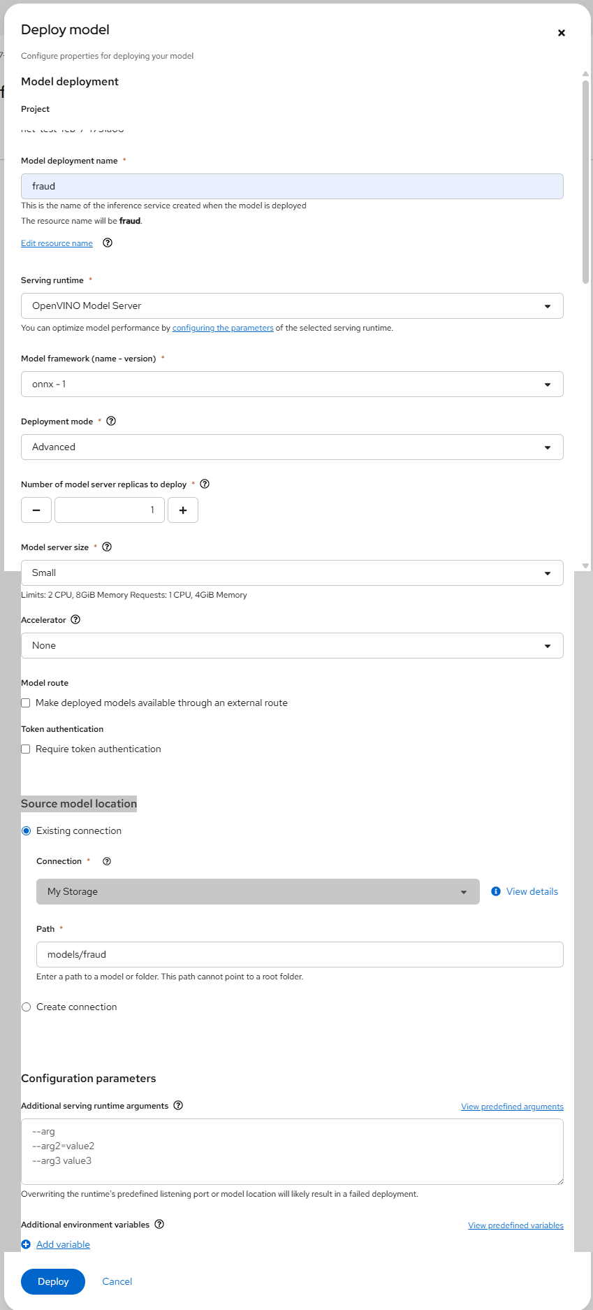 Deploy the "Credit Card Fraud Detection" application on NERC OpenShift, which connects to the deployed model.