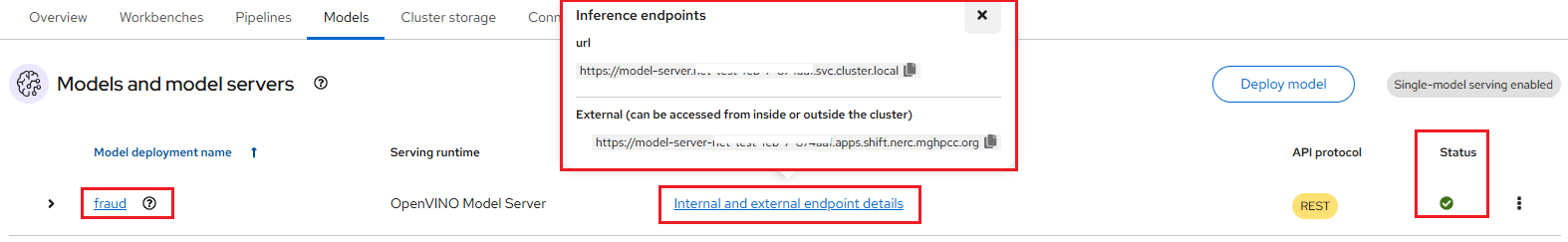 copy the restUrl value. For example: http://modelmesh-serving.<your-namespace>:8008