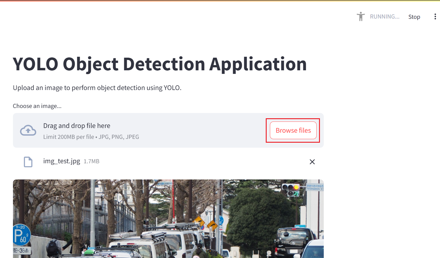 The model application includes a visual user interface (UI) powered by Streamlit, allowing users to interact with the trained model. This interface enables users to upload images and interact with machine learning models seamlessly. This app communicates with a remote model inference service via a REST API to process images and generate predictions about the objects in the uploaded image.