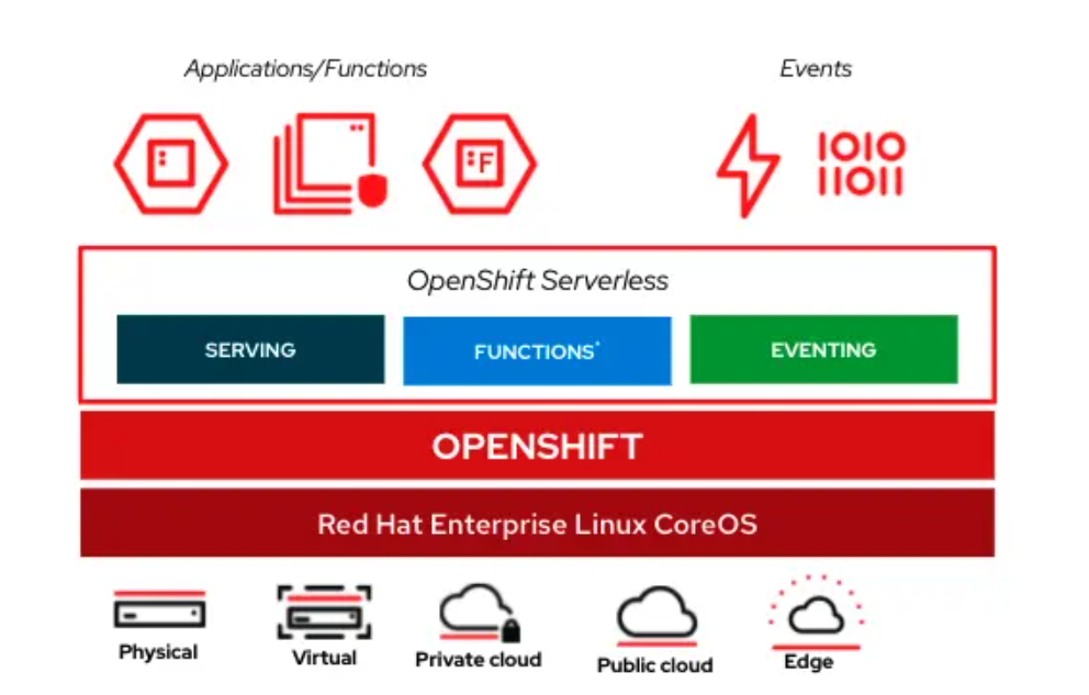 Knative is an open-source project that enables the deployment and management of modern serverless workloads on OpenShift/Kubernetes. Knative bridges the gap between the power of Kubernetes and the simplicity of serverless, event-driven computing. It adds a serverless application layer on top of OpenShift/Kubernetes, allowing you to deploy any modern application workload - from monolithic applications and microservices to small, single-purpose functions.