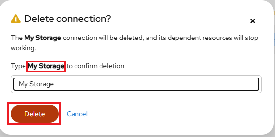 When prompted please confirm your cluster storage name and then click "Delete storage" button, as shown below: