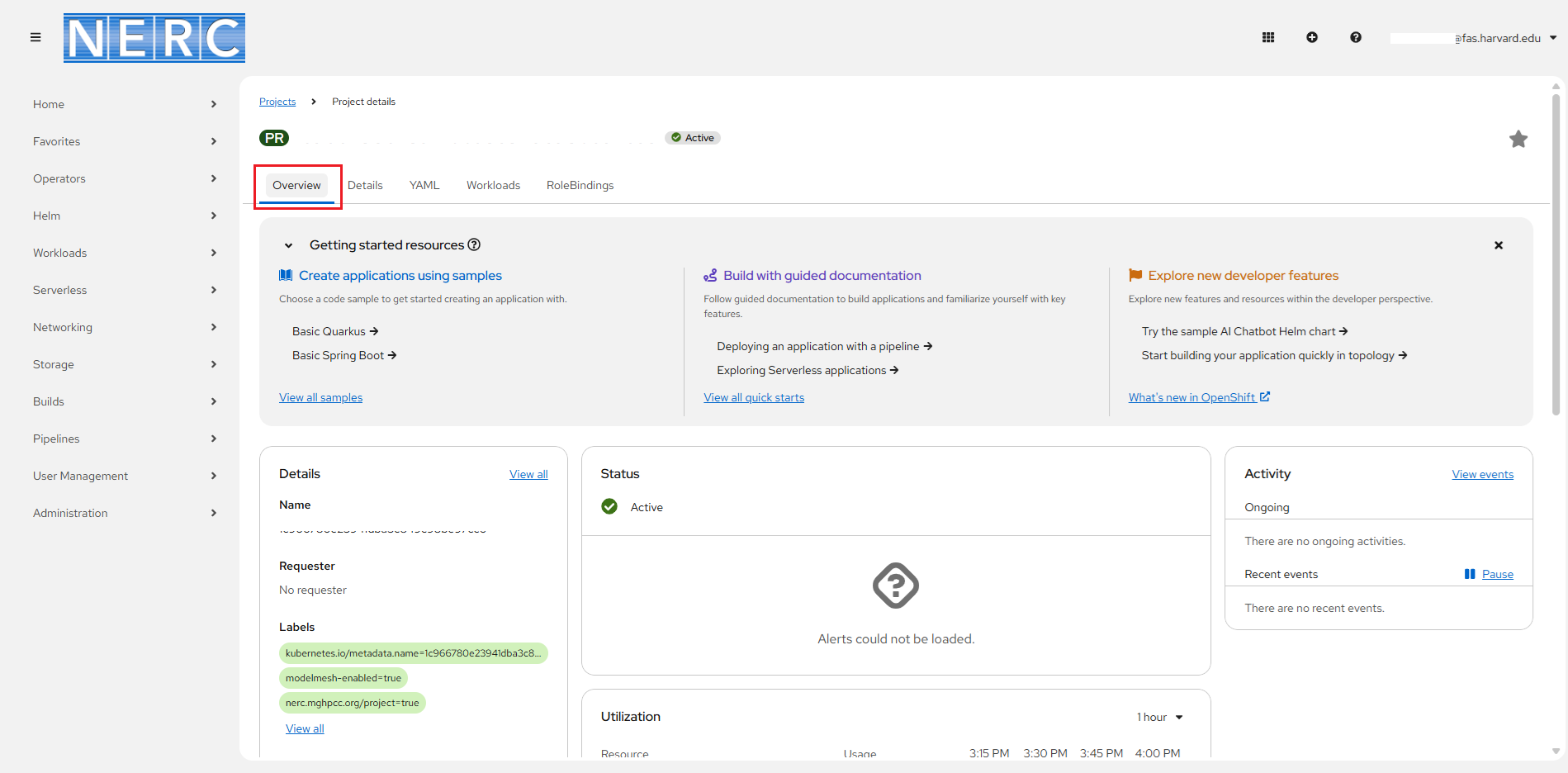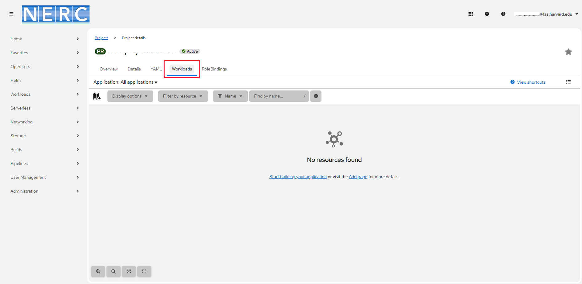 Access the NERC Academic (EDU) OpenShift web console at: https://console.apps.edu.nerc.mghpcc.org