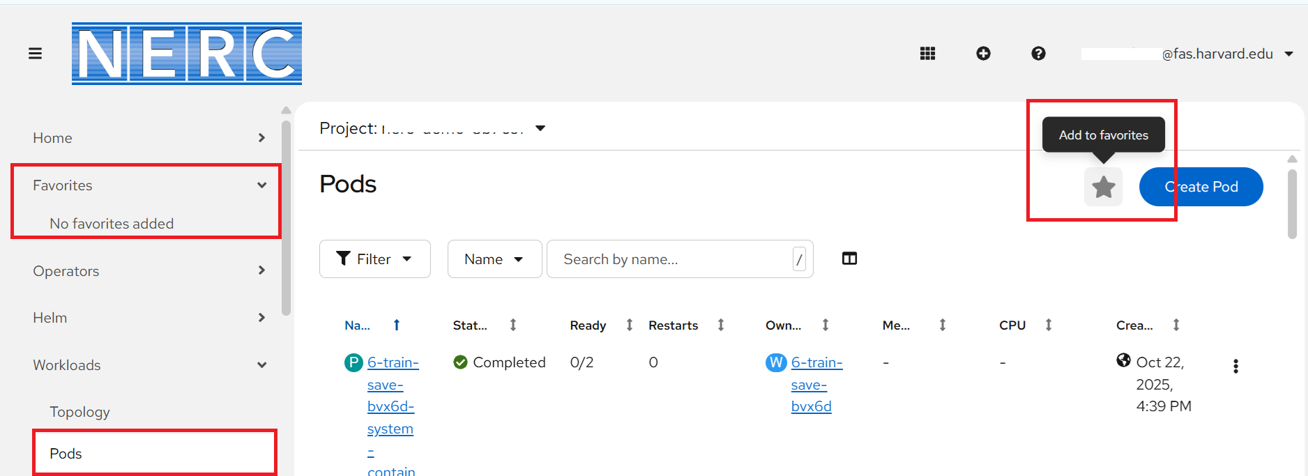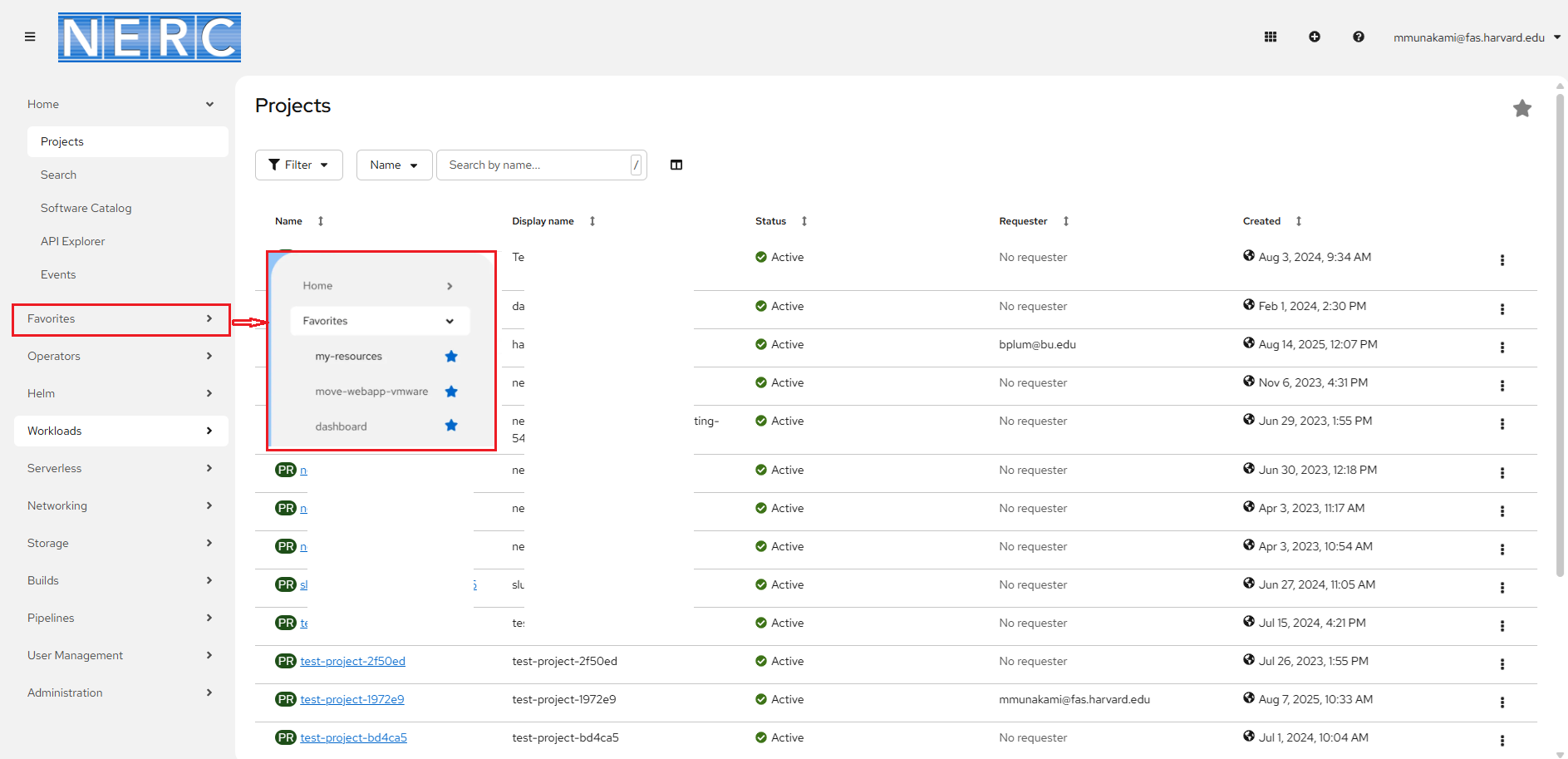 Access the NERC Academic (EDU) OpenShift web console at: https://console.apps.edu.nerc.mghpcc.org
