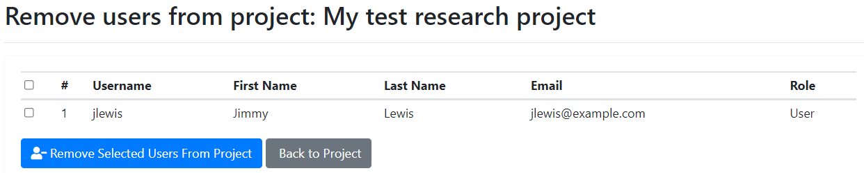PI or project managers can select the user(s) and then click on the "Remove Selected Users From Project" button.